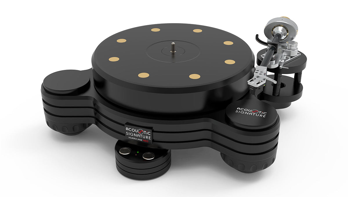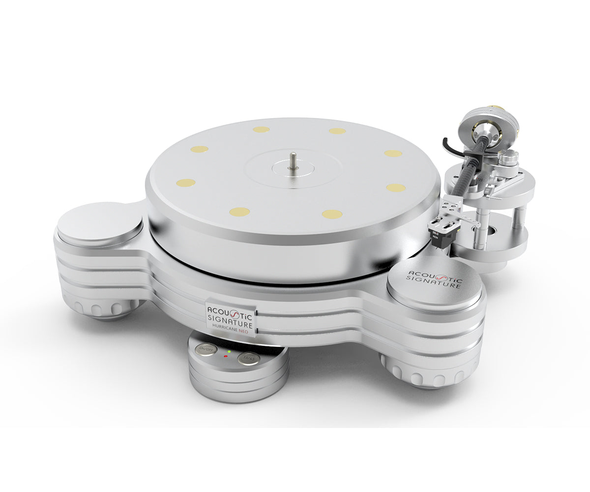 Our brand new HURRICANE NEO represents the entry into our multi-motor drive concept. The ACOUSTIC SIGNATURE HURRICANE NEO lives up to its name in terms of dynamics and belies all those “analog lovers” who claim that a high mass turntable cannot perform ‘explosively’ and with fine dynamics at the same time. The HURRICANE NEO is prepared for 3 tonearms – offering an enormous amount of flexibility and musicality with exceptional value for the money. In short: HURRICANE NEO is a ‘Future Classic’ that will raise a lot of audiophile dust!
