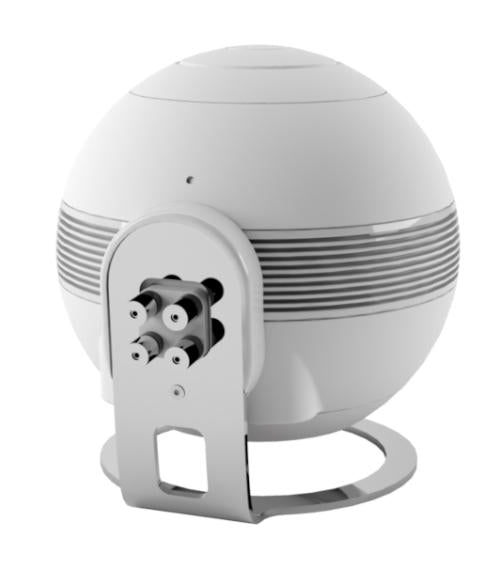 THE PEARL SUB rests on a raw steel base, cut, bent, and then chromed, which supports the subwoofer in the air, creating a refined and airy design. Four coats of matte paint were required to achieve a perfect finish on the sphere.