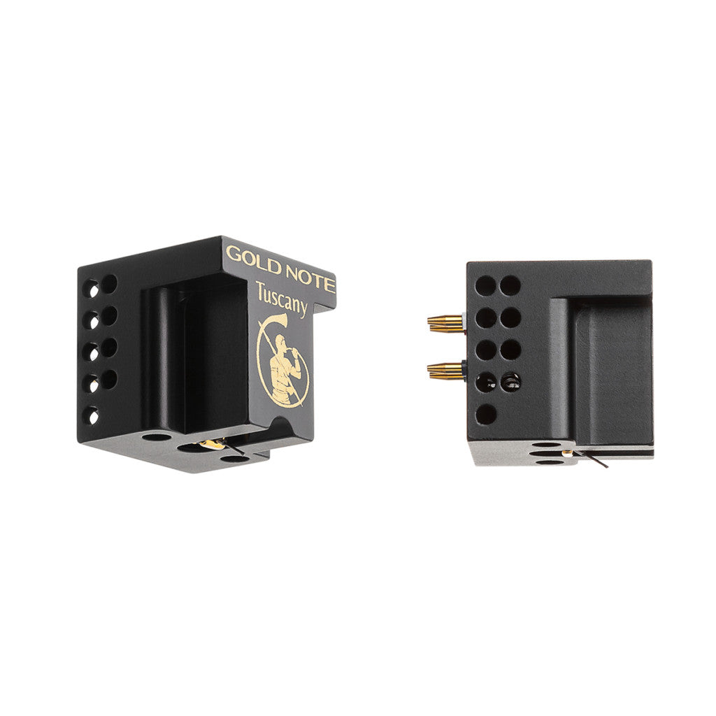 The long connectors, gold-plated, guarantee an ideal contact with the tonearm’s cinch to preserve the signal to the maximum and improve the grounding, restoring every musical event in its single details. The Tuscany cartridges are available in two models, Gold and Red, with precious coils respectively in silver and copper.