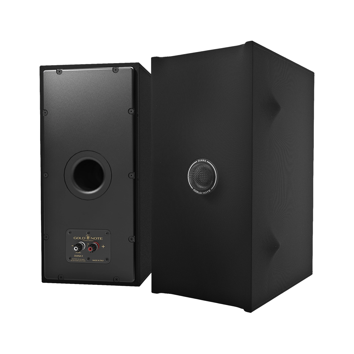 Welcome to the new era of sound with Diana, the Gold Note line that transcends the conventional concept of loudspeaker. Made with state-of-the-art materials and cutting-edge technology, the Diana line embodies the true essence of Made in Italy, perfectly blending craftsmanship and audio innovation. This extraordinary line is distinguished by its easy positioning, elegant design, fine materials, high sensitivity that allows being paired even with 10Watt power amplifier and unparalleled modularity. The Diana I and Diana II bookshelf loudspeakers combine innovative design with carefully selected materials to deliver unparalleled sound quality. For an even more immersive experience, the two bookshelf loudspeakers can be paired with the Diana III-F, the first modular extender designed to transform the Diana I and Diana II into true floorstanding loudspeakers. The Diana line also includes the Diana Center, the first Gold Note product dedicated to home theatre, designed to offer a complete loudspeaker line for all sound lovers.