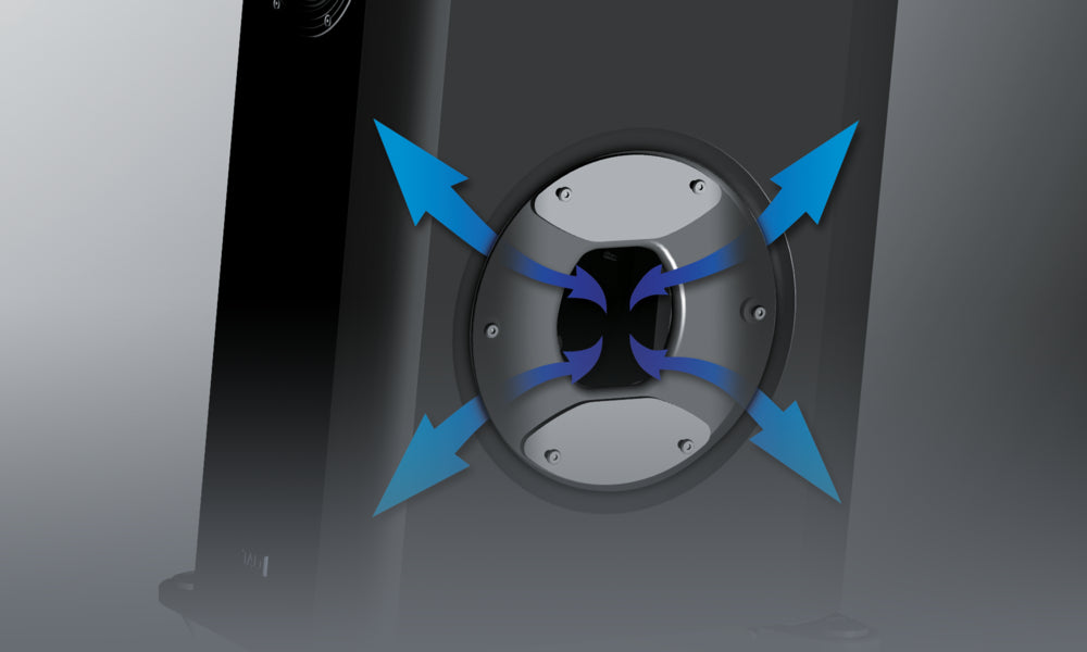 This symmetrical front-back, left-right layout combined with the low, offset slot location eliminates unwanted sound from the port and reduces standing waves within the enclosure.