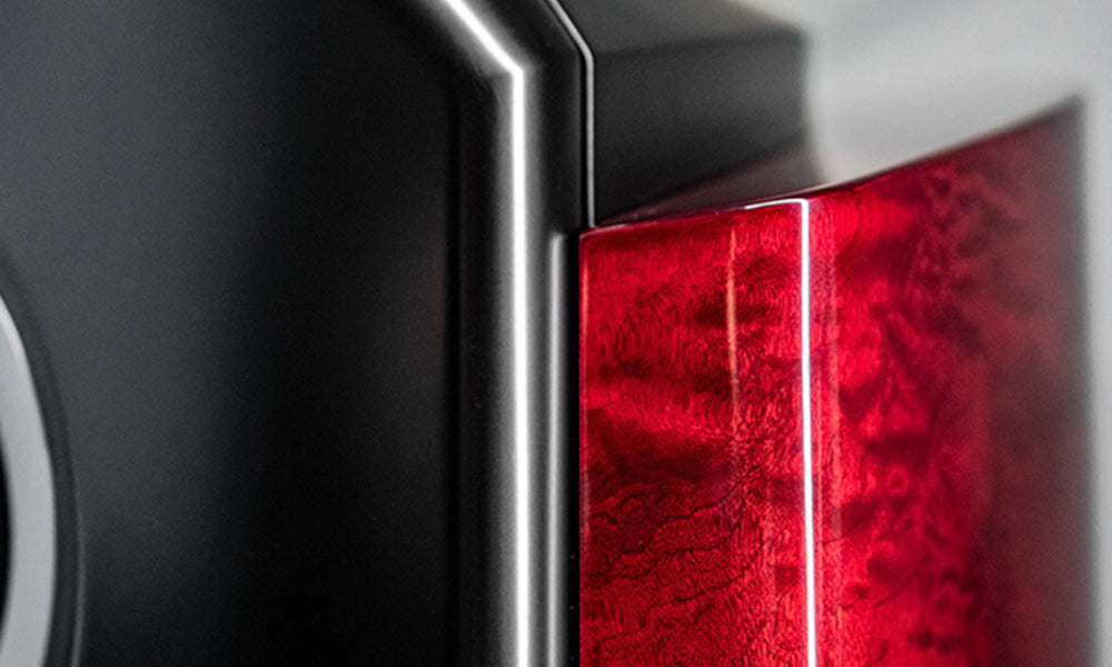 The outer surface of the enclosure features natural Pommele Sapele wood, which imparts an artistic air of elegance with its unique wavy pattern similar to that used in the construction of high-end cabinetry and top-grade musical instruments. In the finishing process, skilled artisans meticulously perform dozens of finishing steps for each enclosure. The enclosure comes in two colors – Emerald Black and Beryl Red – which derives from beryl, a rare ore that is the raw material used for the beryllium diaphragm. It adds a sparkling accent to the user's audio collection and interior décor with its beautiful texture unique to natural wood and deep gloss with color tones that exude elegance.