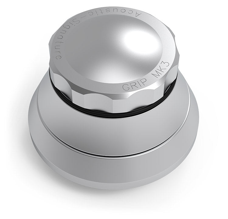Compared to a normal record weight stabilizer the Grip MK3 offers a significantly higher contact pressure and, due to its mass of 330 grams, cannot stress the bearing – the optimal addition for turntables with sub-chassis and/or little platter mass.