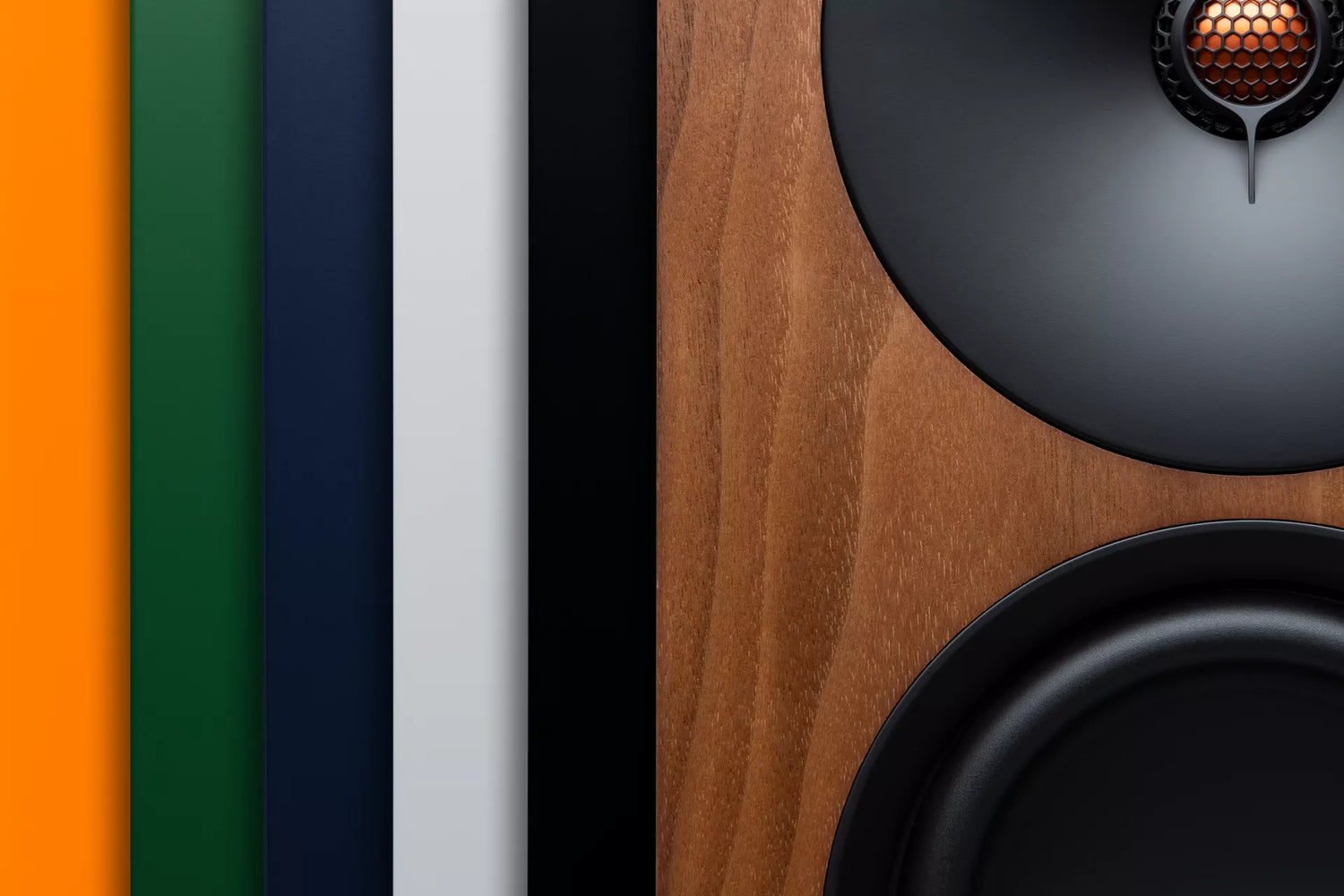 Our proprietary 28mm tweeters utilize a dual-radius aluminum dome, a custom waveguide, and an advanced rear chamber design to deliver exceptional detail and depth. The result is an ultra-wide, highly realistic soundstage where the speakers seem to disappear, creating a virtually holographic listening experience.