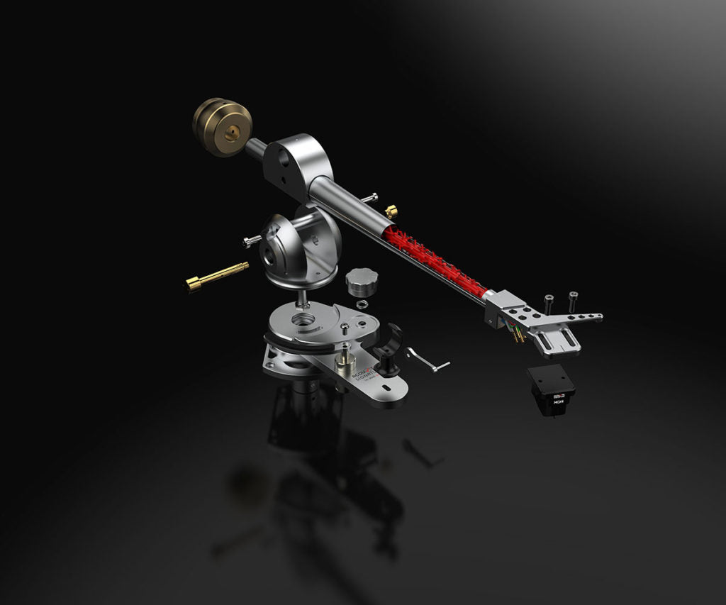 • Tonearm with exten­sively dam­ped multi-structure alumi­num armtube