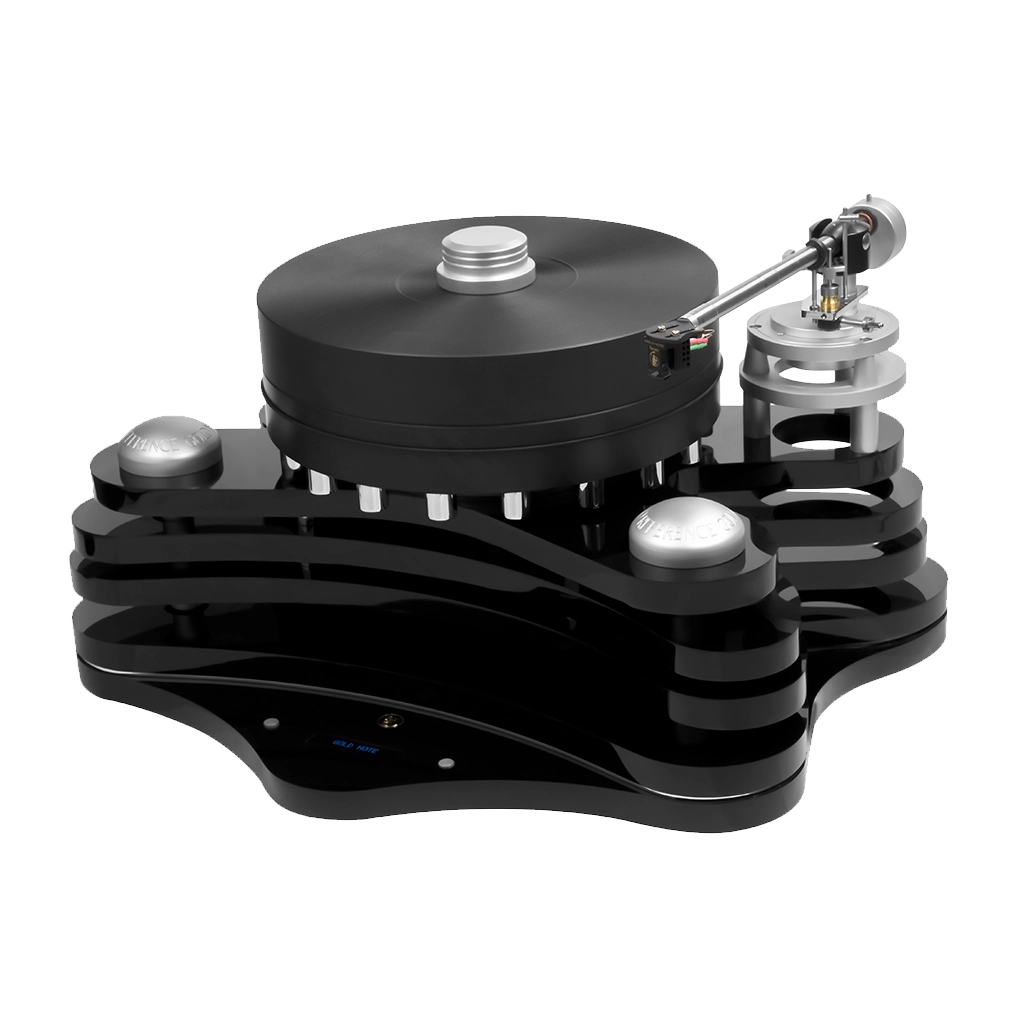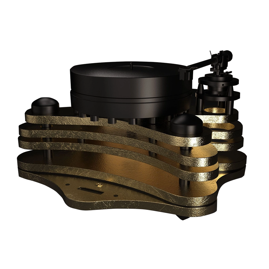 In order to achieve absolute prestige sound quality, Bellagio Reference uses five different curved boards that guarantee maximum rigidity and non-deformability, allowing for the best possible control of resonance. The boards are connected to each other by aluminum plates that increase their damping capacity. Bellagio Reference can also boast one of the best platter spindles ever made for a turntable. To ensure extraordinary efficiency, the platter spindle is made of the hardest carbon steel alloy, C40, tempered, ground and polished to ensure virtually perfect rotation. The socket is made of ground and lapped bronze to ensure a mating tolerance of 1/100mm with the pin. Bellagio Reference is beauty, form and technique at the service of sound.