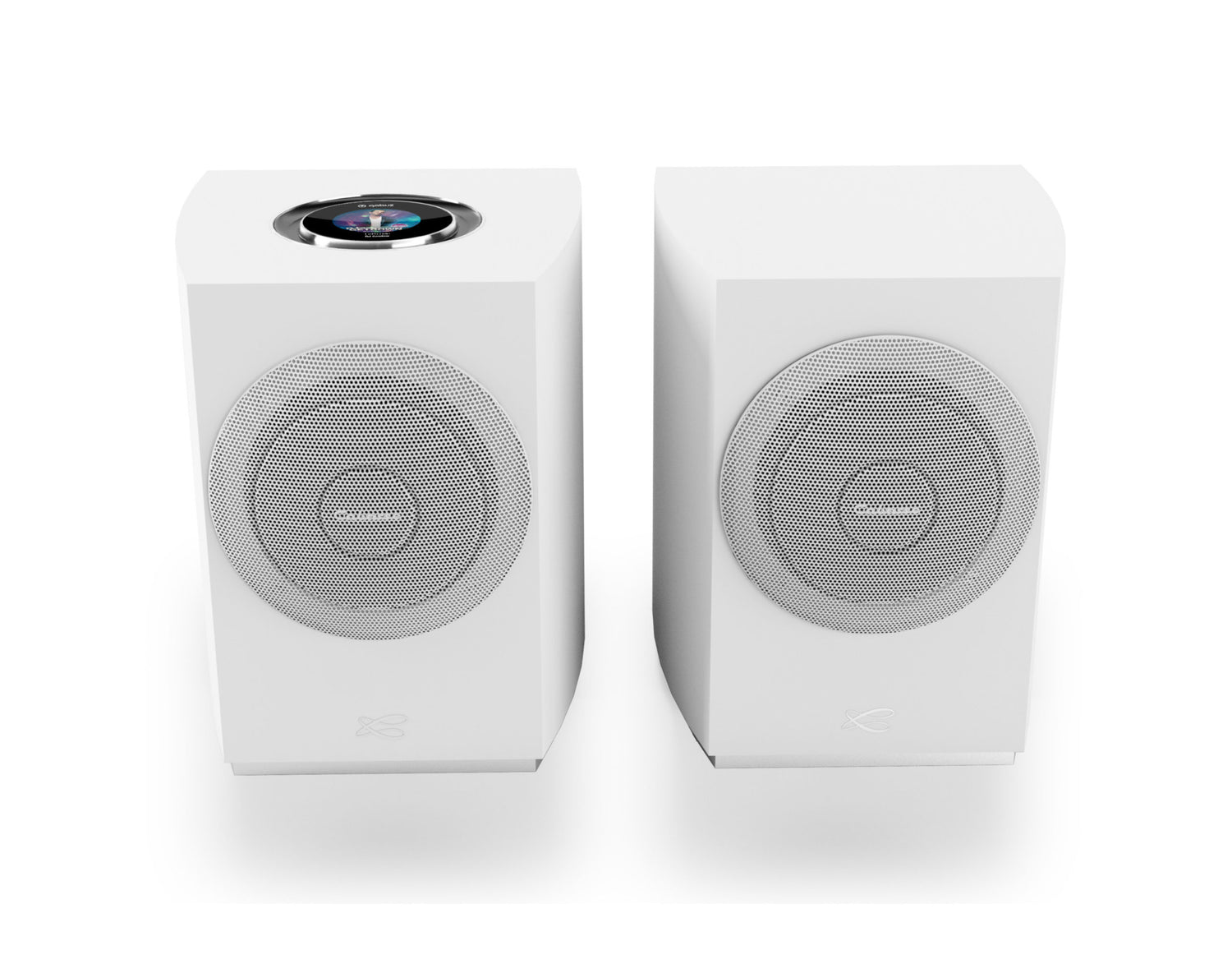 The specially designed stands for the RIALTO high-resolution wireless stereo speakers are available in elegant matte black and white finishes. Thoughtfully engineered, they discreetly conceal cables to ensure a seamless and refined integration into your listening space.