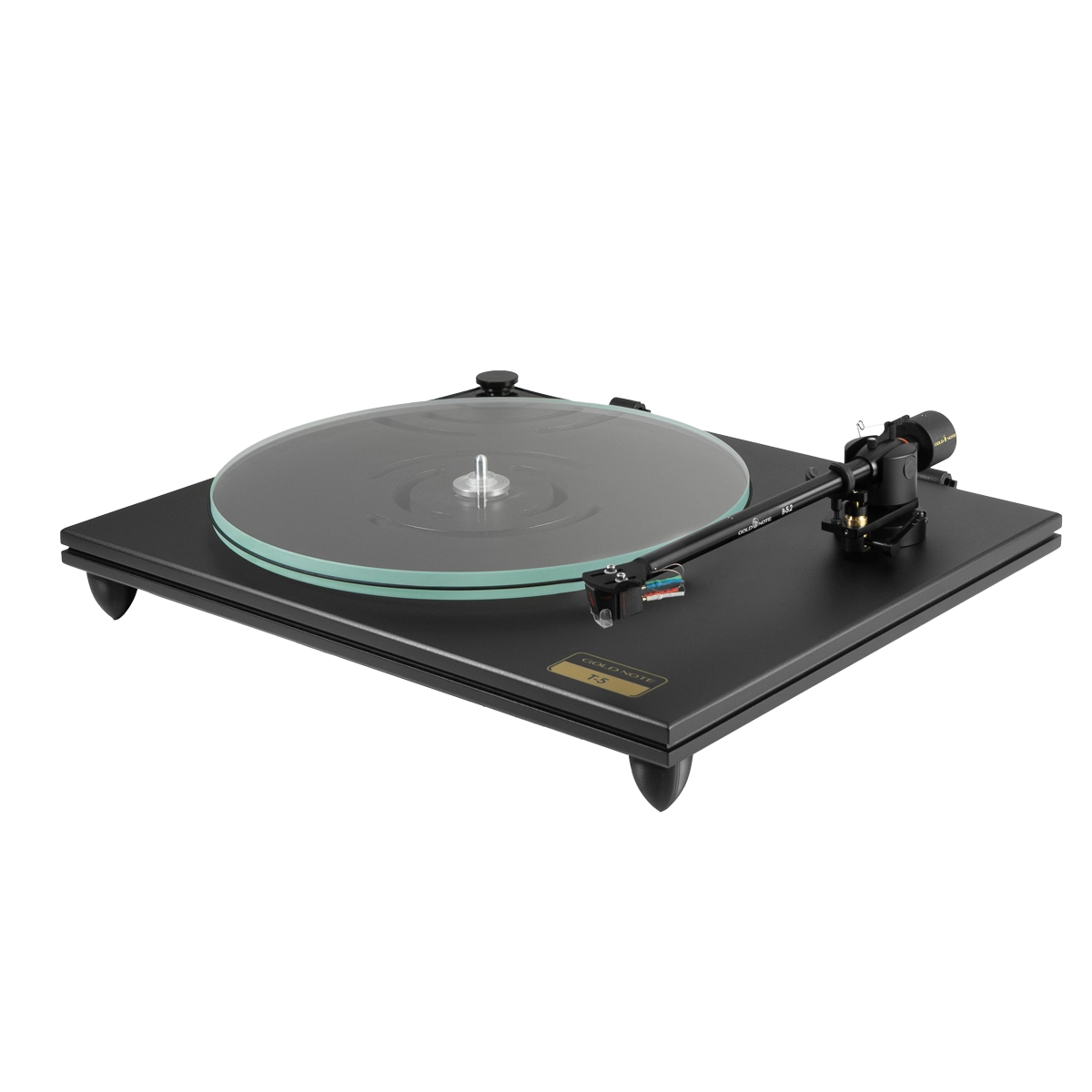 For the T-5, we have developed a 15mm thick platter made of ultra-clear glass, a high quality material that provides the right density and structure to extract fine details from the groove while minimising noise. The platter is matched with an inverted bearing, an elegant solution to increase the stability of the platter while also ensuring frictionless rotation.