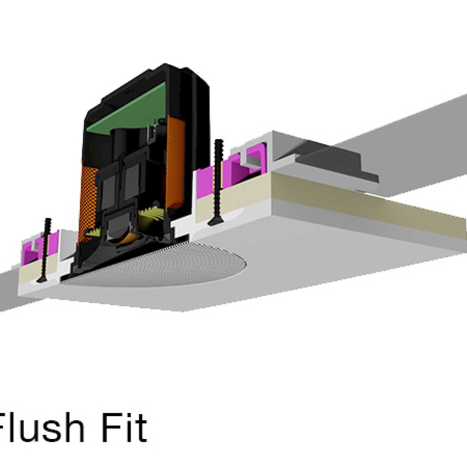 In a pre-construction set-up, the CFB3-R & CFB3-SQ enable a seamless, flush fit appearance. You get clean lines, with no shadow-creating edges, and paint the grille to match the ceiling, and the speaker disappears even further into the background.