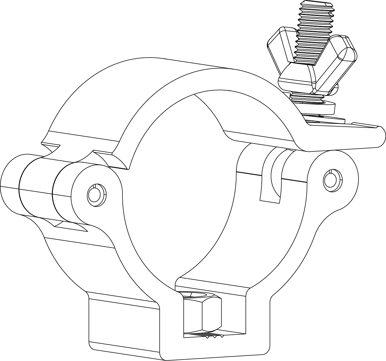 The sturdy aluminium V120 Truss Clamp wraps around the truss and tightens with an adjustable knob to ensure a tight, reliable connection and long-lasting performance.