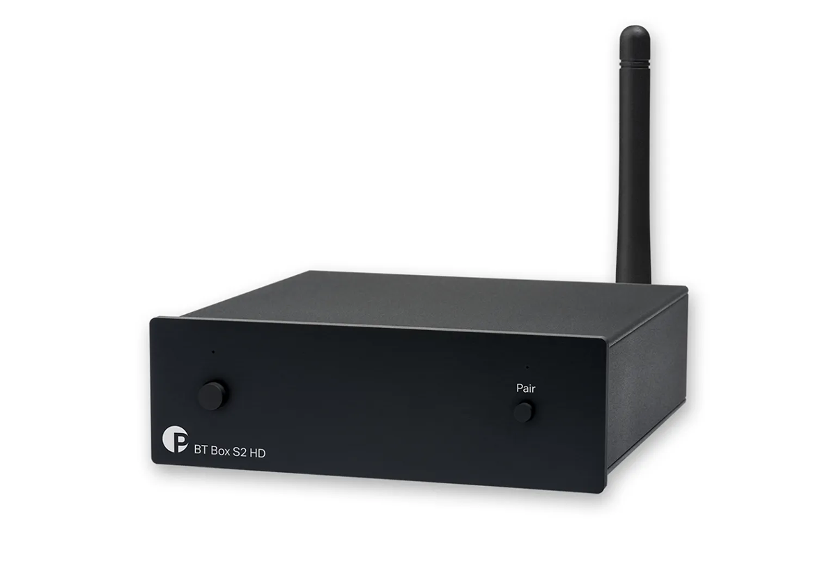 The BT Box S2 HD is our next generation, high-definition Bluetooth receiver, using latest technologies like Bluetooth 5.0 and aptX-HD for elevating your mobile Bluetooth listening to true Hi-Fi stereo levels. Leveraging the increased Bluetooth 5 range and transmission bandwidth the new and advanced aptX-HD codec sounds crisp, detailed, dynamic and excellent at all times, even if the Bluetooth connection quality momentarily drops. This avoids typical lossy compression artifacts of other codecs. Drawing on Pro-Ject Audio System’s decades long experience in designing and manufacturing analogue turntables and Hi-Fi electronics, the dedicated high-quality analogue output buffer stage in the BT Box S2 HD ensures that the connection to your amplifier and loudspeakers is as robust and solid as it can possibly get. It is the ultimate fusion of cutting-edge digital and traditional analogue design principles.